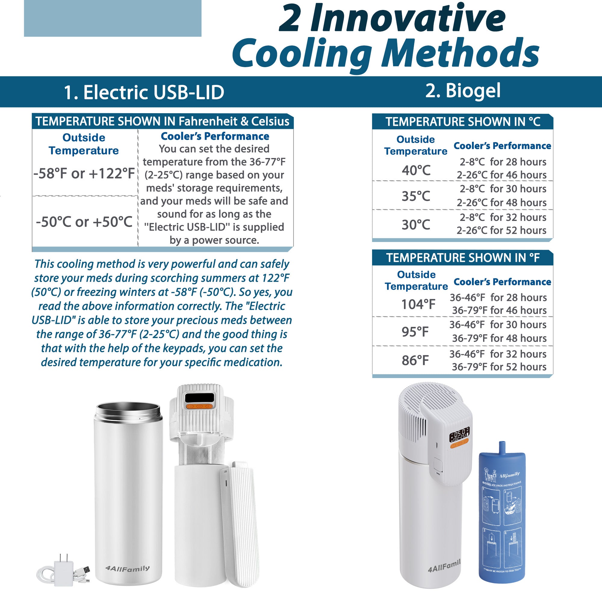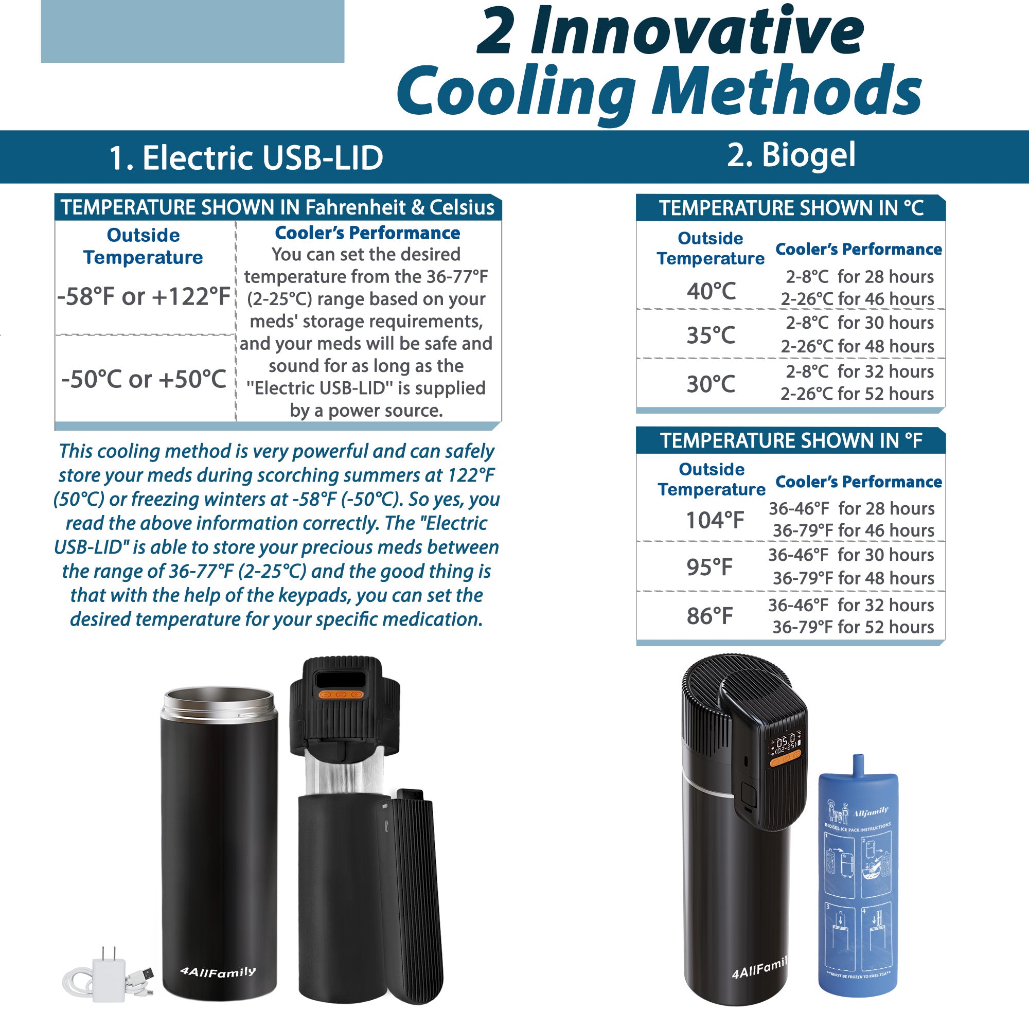 Die 4AllFamily Medikamenten Kühltaschen für Reisen können für alle Medikamente verwendet werden, die entweder bei Kühlschranktemperatur oder bei Raumtemperatur aufbewahrt werden müssen: