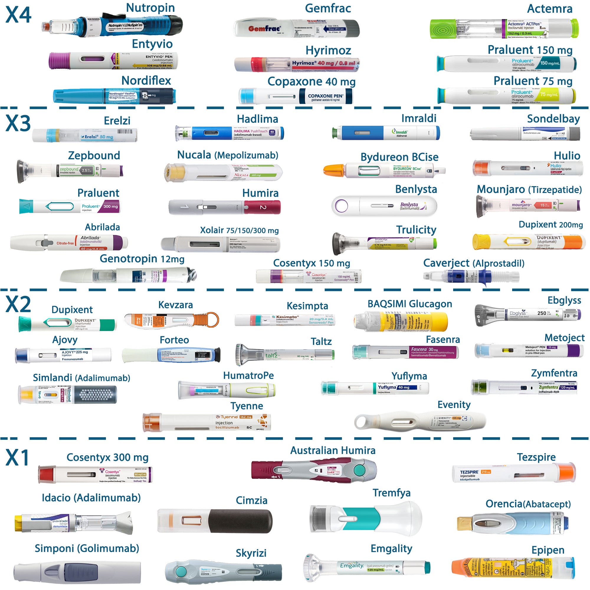 - Asthma (Xolair, Dupixent, Nucala)